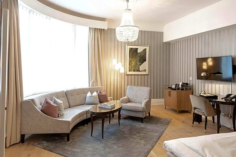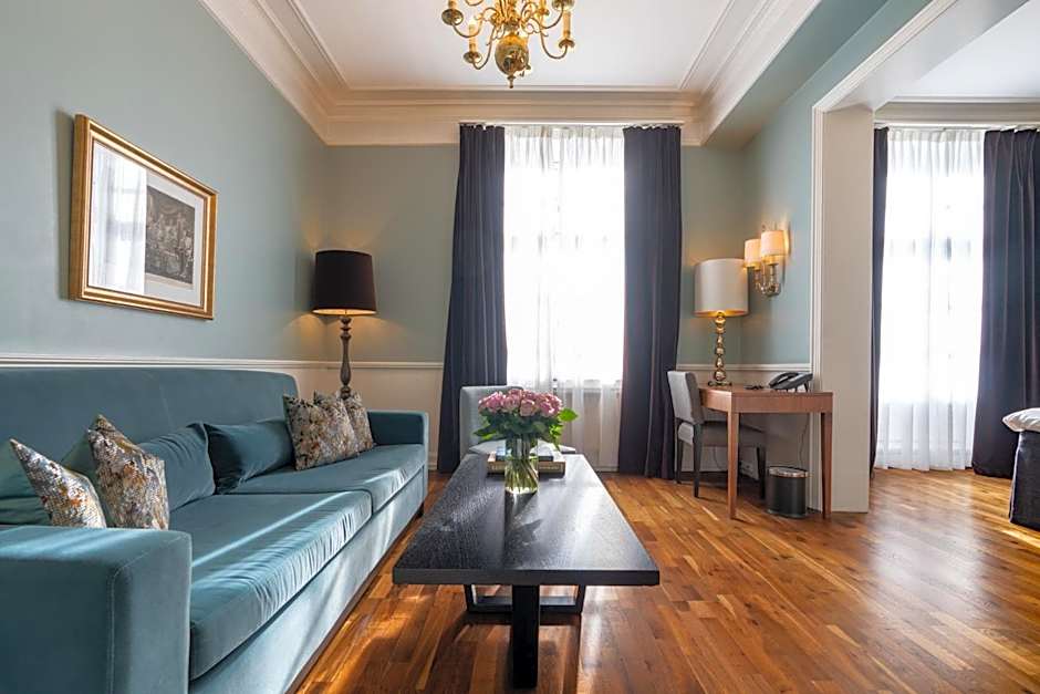 This spacious double room features elegant furnishings, a large seating area and mini-bar. The private tiled-bathroom comes with a bath and handheld shower.